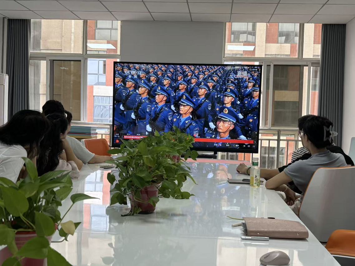 直播过程中,师生们全神贯注,目光紧紧追随屏幕中的每一个画面。从步伐铿锵、气势如虹的徒步方队,到铁甲奔流、科技赋能的装备方队,再到鹰击长空、翱翔天际的空中梯队,每一个震撼瞬间都引发师生们的阵阵赞叹。大家不时拿出手机记录精彩画面,在关键环节自发鼓掌,用最真挚的方式表达对祖国强大的自豪与对人民军队的敬意。大家为祖国强大的军事实力和科技实力而骄傲,为中国军人的威武英姿和过硬素质而点赞。