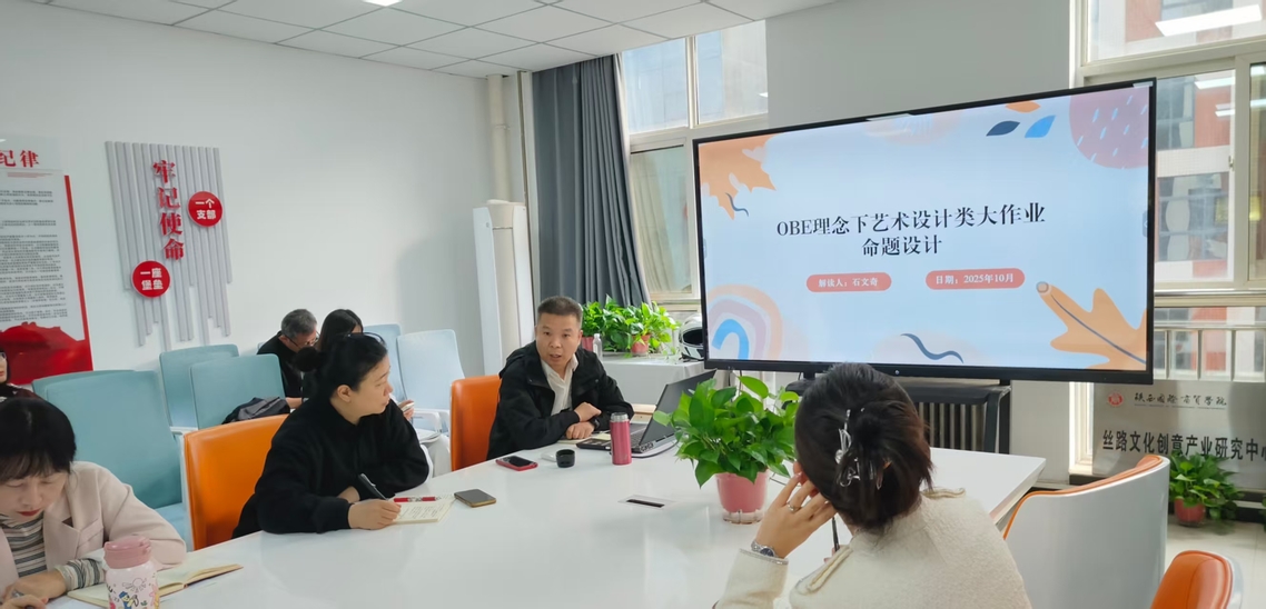 1013日下午,我集团在学院会议室举行“OBE理念下艺术设计类大作业命题设计”专项培训,石文奇助理主讲,聚焦服装、环境设计、动画三个本科设计专业,旨在推动OBE(成果导向教育)理念落地,提升教师命题设计能力,培养行业适配人才。
